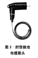 終端頭、雙通套管、帶電指示器和不銹鋼箱組成,采用結(jié)構(gòu)緊湊的全封閉設(shè)計,電纜完全處于全密封狀態(tài),須先拆除電纜封帽、堵蓋露出金屬雙頭螺桿才能驗電。以往拆電纜頭前都未驗電,而僅通過觀察帶電顯示器來判斷電纜是否帶電(規(guī)程L1中未明文規(guī)定),若帶電顯示器發(fā)生故障而又無其它安全保護(hù)措施,則會危及檢修人員的安全。雖然國內(nèi)多個廠家針對電纜分支箱、箱式變及環(huán)網(wǎng)開關(guān)柜制作的肘型接地電纜接頭(見圖2)可用來完成最后的接地工作,但無法做到之前電纜頭拆除工作的安全保護(hù),也就無法完成完整的技術(shù)措施。而本文研制的電纜分支箱驗電接地工具(見圖3)就圓滿解決了該問題,可完成電纜分支箱停電工作時必須實施的一系列安全技術(shù)措施,保障檢修人員的人身安全。